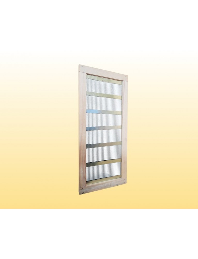 Tela excluidora para núcleo usada em colmeias padrão Langstroth, a peça apresenta acabamento lateral em madeira seca em estufa.